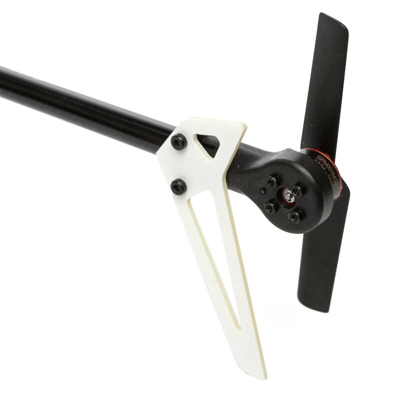 The hybrid mainframe takes rigidity to another level for a rock-solid flight experience. The carbon fibre main rotor blades feature an improved aerodynamic design with increases in efficiency and power. An oversized tail boom eliminates the need for boom supports and is crowned by an ABS plastic tail case improving vibration damping and performance.