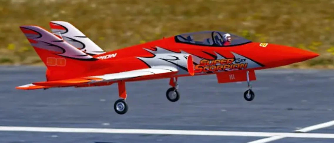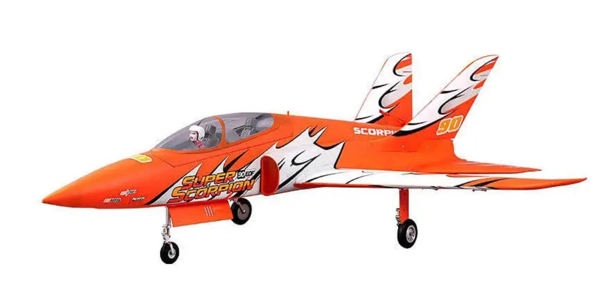 The 90mm Super Scorpion keeps all superior features of the prior 70mm Super Scorpion, while improving the model structure, and adding a flap function. When working with the new power system, it performs excellently whether high-speed flying or standard-speed flying. In addition, it features the CNC-processed shock-absorbed metal landing gear set, a 50mm diameter front wheel and 68mm diameter rear wheels, these are excellent for taking off and landing on both paved and grass surface airfields.