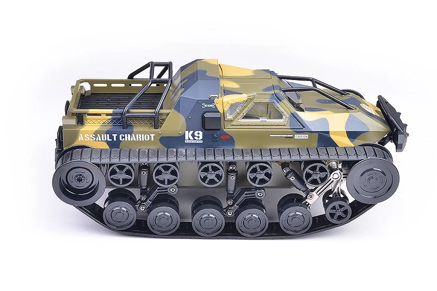 Tracks complete with shock absorbing independant suspension and a raised centre cockpit enables you to drive through shallow puddles (up to 5cm depth) and over obstacles with ease, as well as conquer gradients of up to 30Ëš.