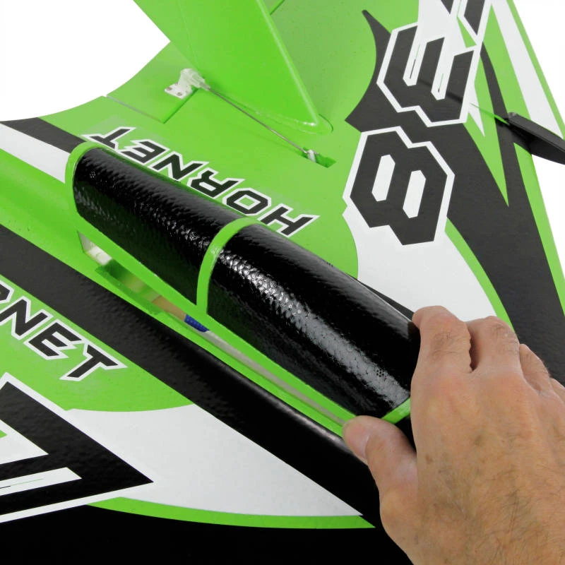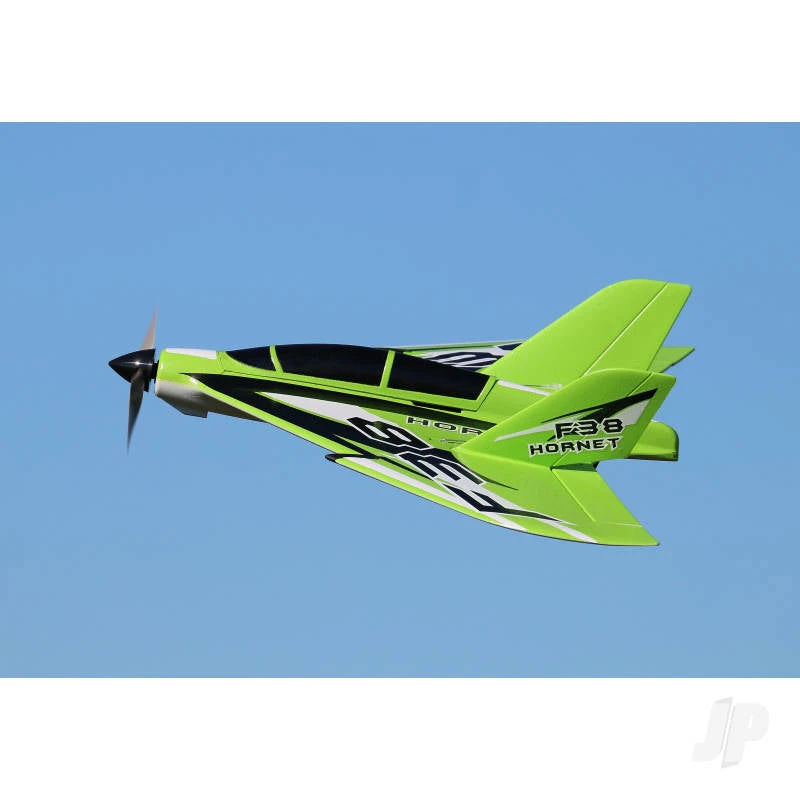 Looking for fast and furious R/C fun? Then you’ve come to the right place. Buckle up, tuck this tantalising F38 under your arm and prepare for a 3S-fuelled thrill that’ll have your clubmates rushing to buy their own. Make sure they get a different colour and enjoy triple the excitement as you go head-to-head in a bout of brute, brushless pylon racing. Packing a powerful pre-fitted 1200KV brushless motor, 30A ESC and supremely capable twin 9g servos, just 30 short minutes is all it takes to get this 3-channel PNP foamie airborne, and 30 seconds to get hooked! Docile, dead easy to launch and furiously fast, the JP F38 Hornet is the perfect all-weather grab ‘n’ go racer. Suitable for any occasion and almost any field, it’s a keeper.