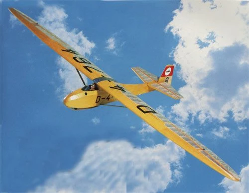 he Grunau baby developed 1932 as improvement of the ESG 31 developed of Edmund cutter and wolf Hirth ” Stanavo”. Soon it to the most popular training glider and many pilots were ” reached on this sample their; Silver C”. The airplane was developed further in the course of the years up to the series III, however the type II b at most was common. This series were used from there also as model for our Scale models. The model was implemented exactly on a scale 1:6 and 1:4. Without changes at the outside form consistently one did, so that also rib distances, end rails and skin with the model to agree. The wing is abgestreut as with the original. The building of the model is not by the sharp-edged hull form so with difficulty as for example with a Minimoa, however experience is compellingly necessary in handling Balsaholz. The component system contains all felling trees hurry carefully punched as well as all metal and linking parts.
