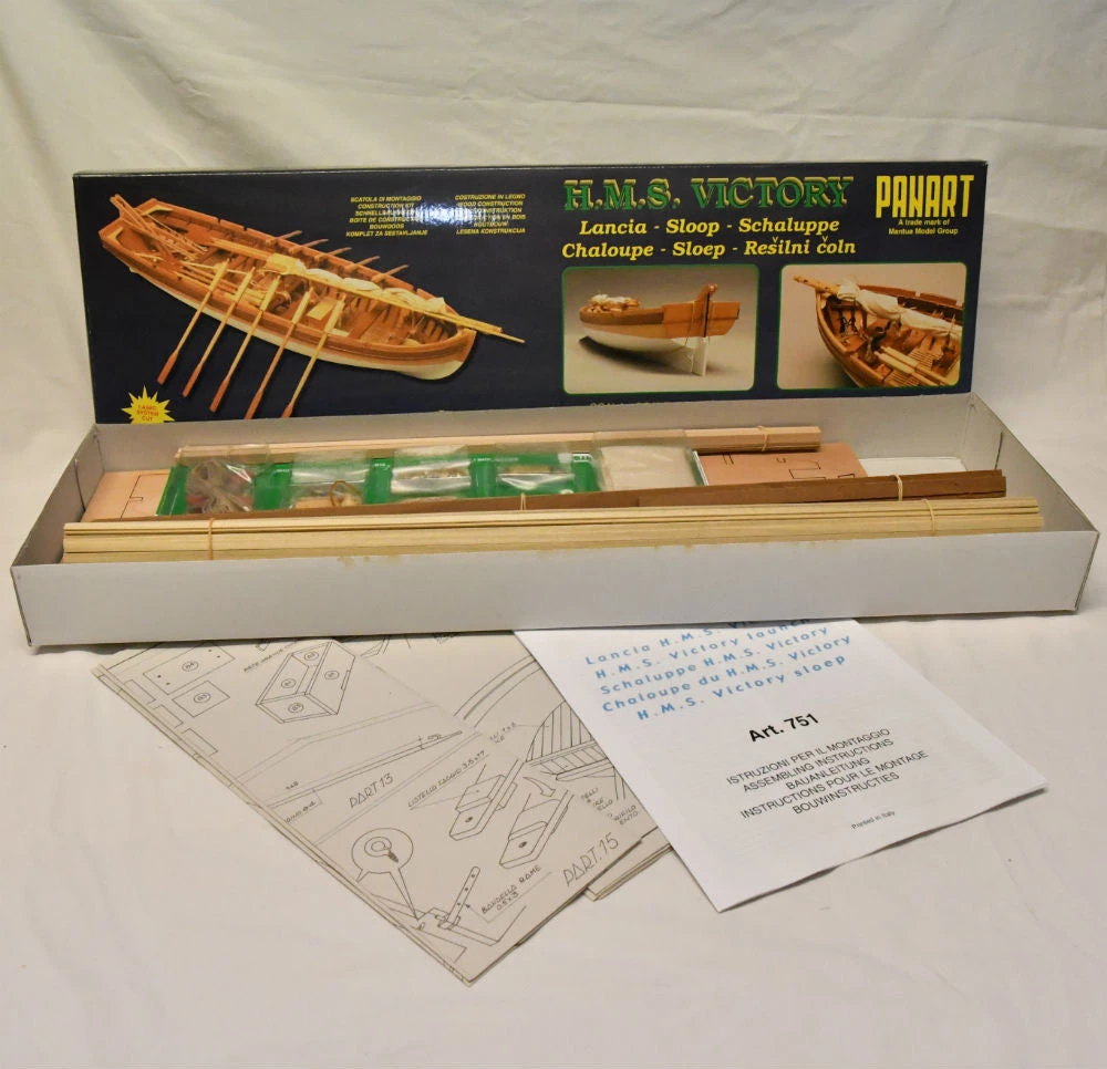 The Panart kit features the following: A triple plank on frame hull construction, building plans with general details, English instructions, walnut and lime planking, wooden masts and spars, brass and walnut fittings, etched brass details, rigging cord and silk flag. All sheet ply sections are laser cut for accuracy.