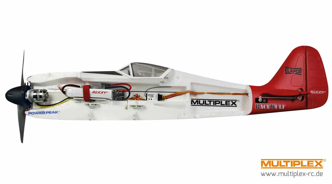 Inspired by the famous DogFighter and the superb FunRacer, the new RaceWulf will appeal to anyone who’s experienced the addictive combination of speed, precision flight, snappy aerobatics and brute, cloud punching power. It’s a heady mix and a sphere of R/C flight in which Multiplex has led the way since the introduction of the original DogFighter back in 2011. With a flight performance that takes these outstanding attributes, breathes on their handling and combines them with an airframe styled on a pseudo Reno version of the formidable Focke Wulf 190, there’s only really going to be one outcome – an aeroplane that hits the adrenaline spot each and every time you fly it.