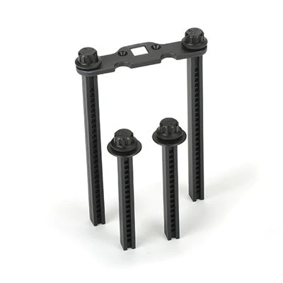 This is an Extended Body Mount Kit with Secure-Loc Caps for the Traxxas Monster Trucks. Pro-Line continues to innovate with more must-have accessories for your Monster Truck. The all-new Pro-Line body mount kit includes adjustable body mounts so you can fit any body on your truck perfectly! But, the Pro-Line Engineers did not stop there. Instead of just using the same old flimsy body clips that always get lost and bent, the Pro-Line Extended Body Mount kit includes a revolutionary screw on body mounting system for a strong and secure mount every time. No more getting stabbed in the finger by those nasty clips! Just screw down the included setscrew into the body mount, place the O-Ring over the setscrew and mount your body as you normally would. This new Extended Body mount kit adds safety, security and styling with Pro-Line’s innovative screw on body mounting system! Get your Extended Body Mount Kit for your REVO® 3.3,E-REVO® and Summit® today!