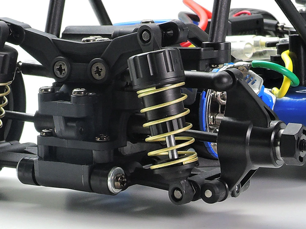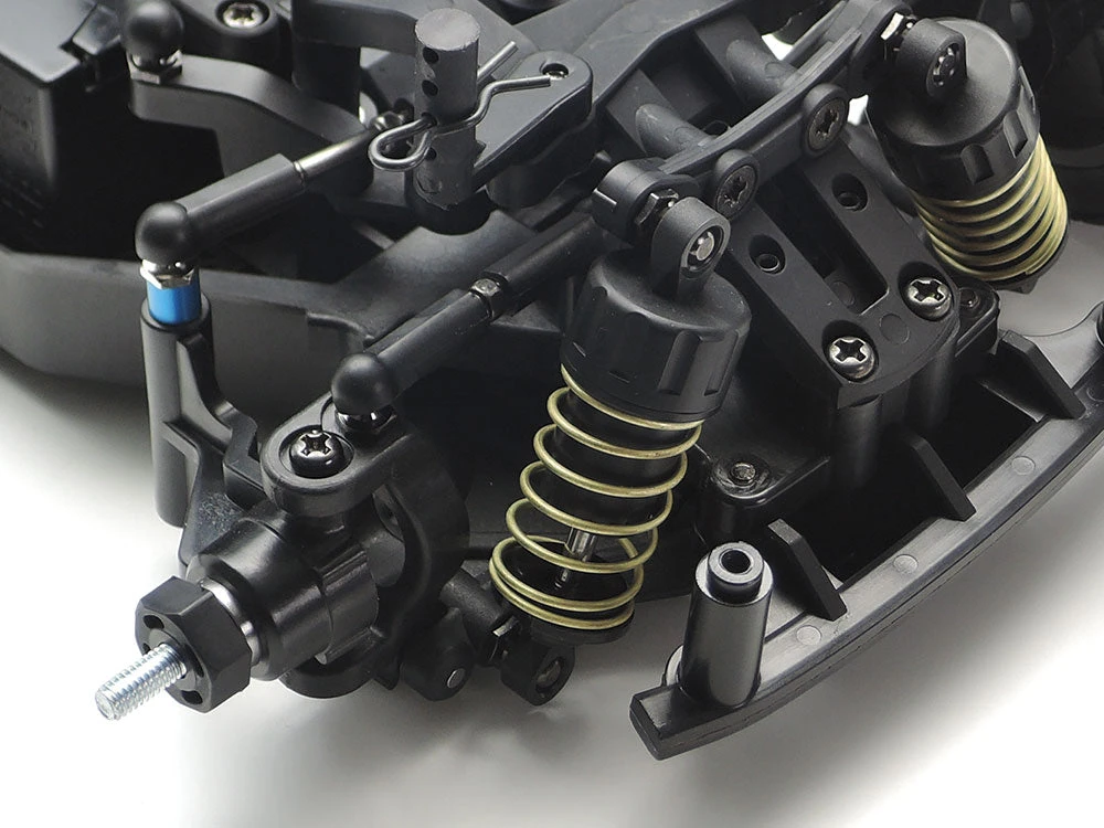 ★M-07 Concept design long suspension arms ★Oil-filled gear differential ★Universal drive shafts ★Turnbuckle upper arms ★Full ball bearings ★Hi-torque servo saver (black)
