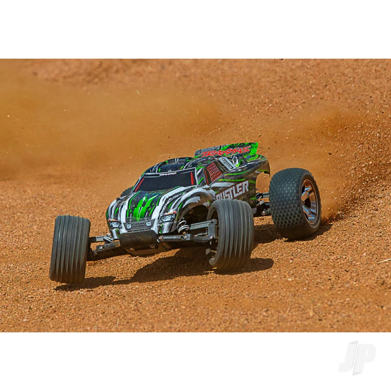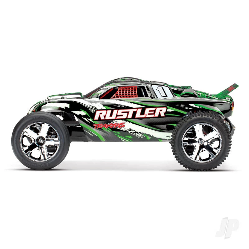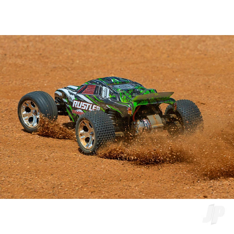 The Traxxas Rustler has a winning formula for rugged, dependable fun and a low, budget-friendly price! The Rustler brings RC fun to a whole new level with faster speeds, innovative technology, and hobby-grade durability for years of fun. With a top speed of 35+mph*, Rustler rips off-road roost with its powerful Titan® 12-turn modified 550 motor and XL-5 Electronic Speed Control. Traxxas’ exclusive waterproof electronics allow Rustler to blast through puddles, mow through mud and shred snow for wild all-weather fun. Your RC adventures are limited only by your imagination. Step up to genuine Traxxas quality and performance and discover a whole new level of fun with the Traxxas Rustler!