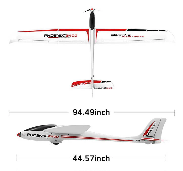 The 2.4M wingspan provides stable performance and makes you enjoy long glider flights. – A rugged plastic fuselarge provides flexibility and durability to prevent aircraft damage.